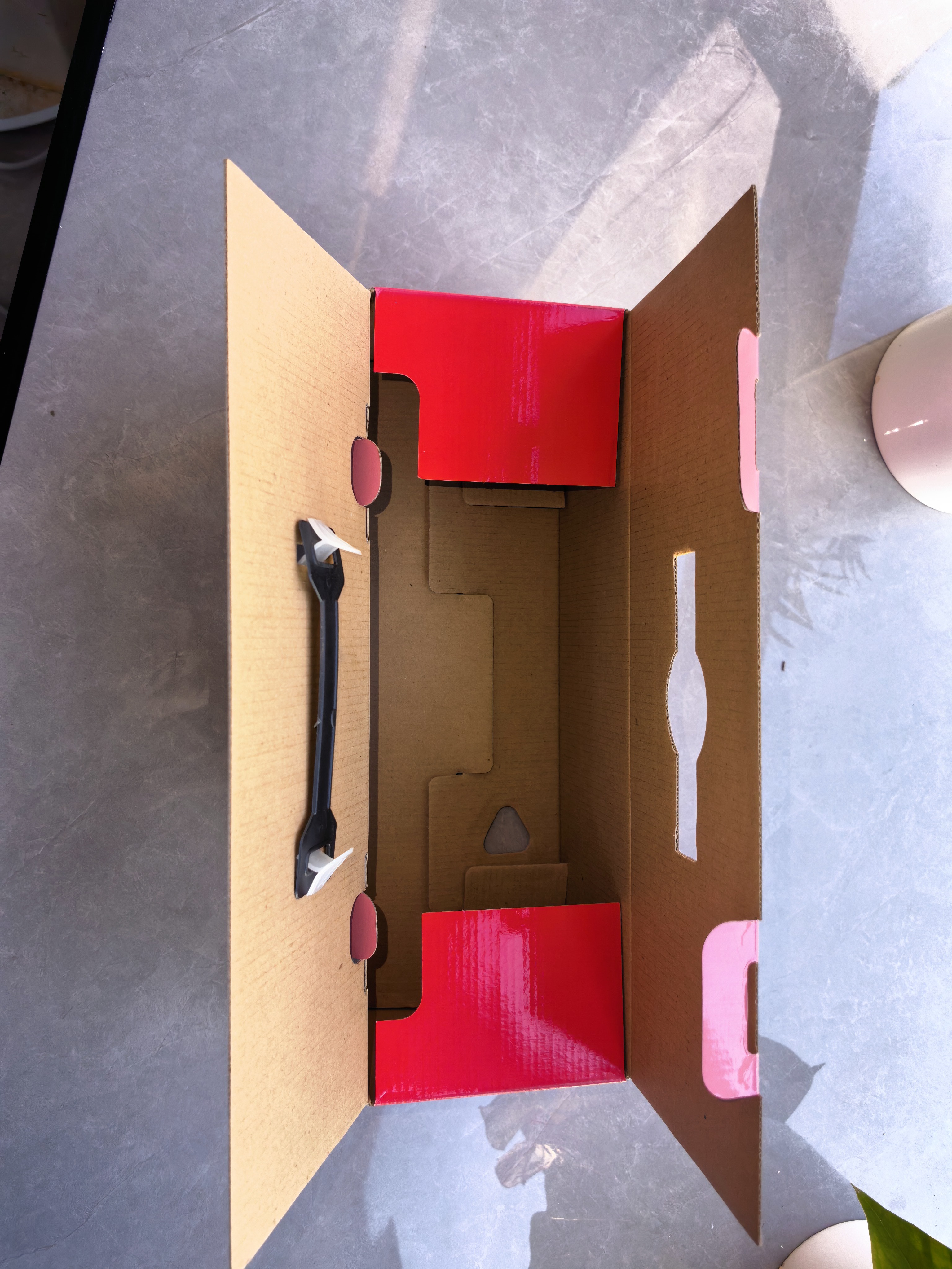 This is a portable and practical foldable corrugated box made of high-strength corrugated cardboard, with strong load-bearing capacity, which can safely accommodate multiple items. Handheld design, comfortable grip, effortless handling; The box can be fully folded, greatly saving storage and transportation space when idle